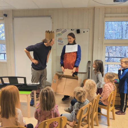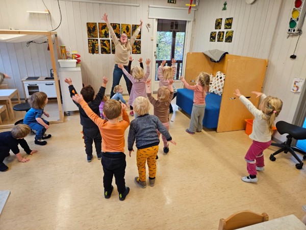 Samlingsstund: sang, musikk, høytlesning, rim og regler, dramatisering, samtaler med barna, leker m.m.